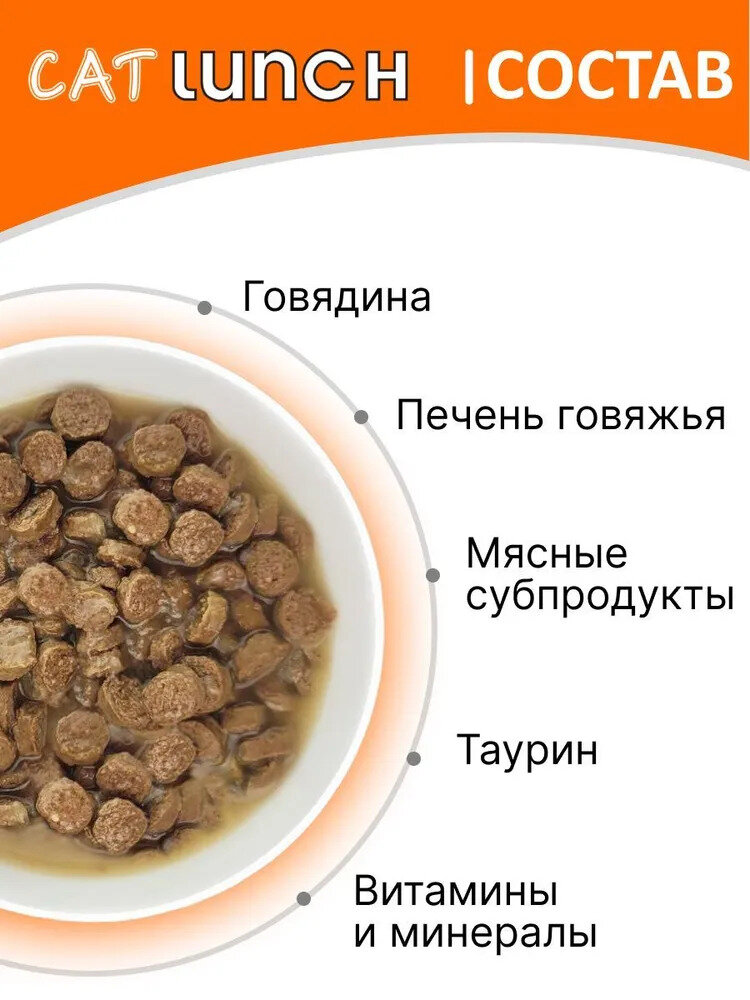 Cat Lunch пауч для кошек кусочки в желе Говядина и Печень 85г информация: