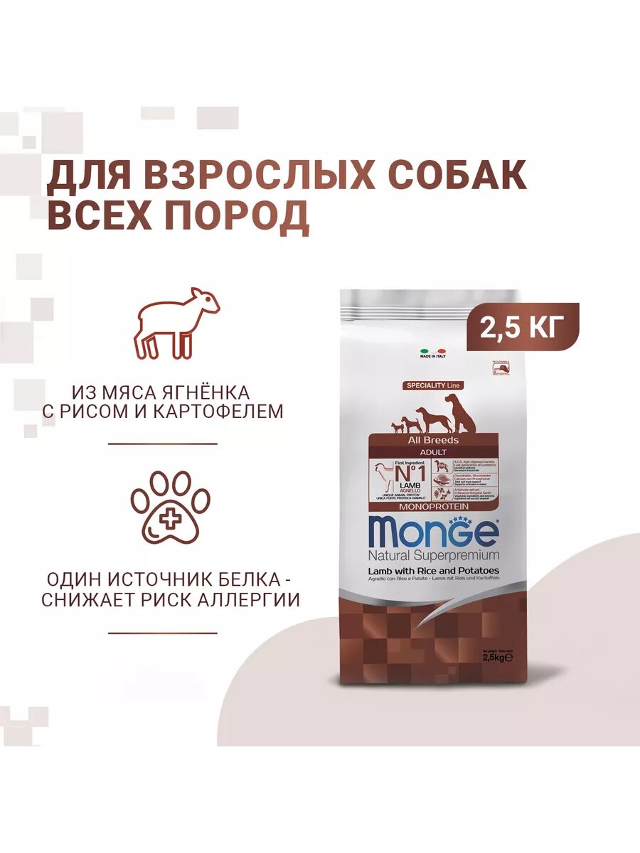 Сухой корм для собак Monge из ягненка с рисом и картофелем 2,5 кг информация: