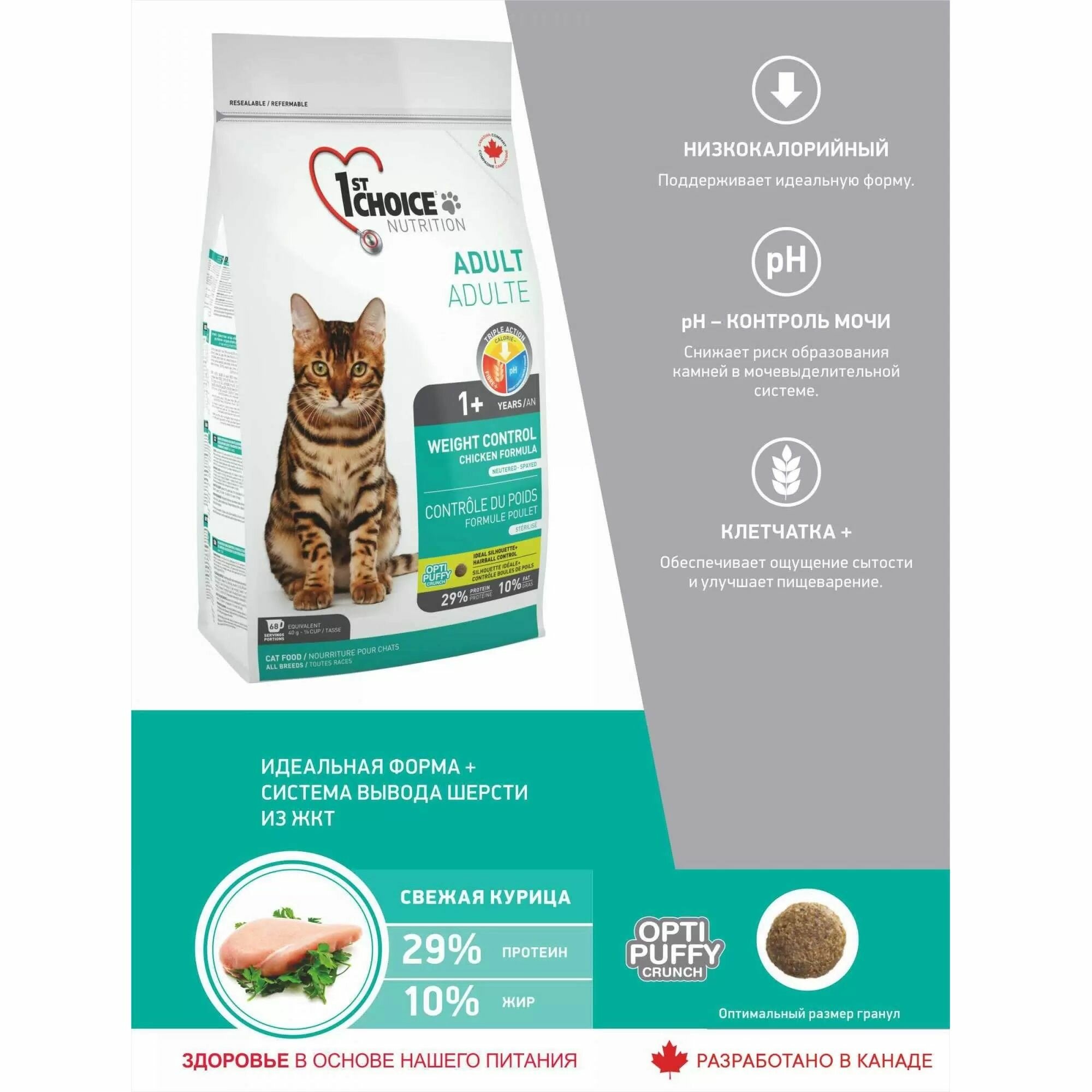 1st Choice Weight Control Сухой корм для взрослых кошек, склонных к набору веса (с курицей), 5,44 кг
