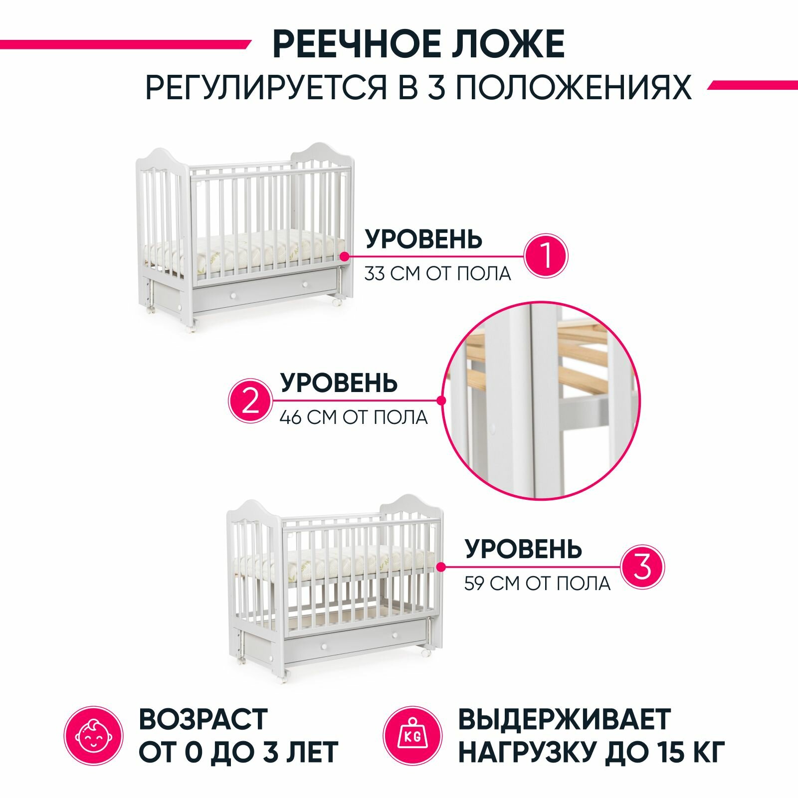 | Глубина кроватки | 33 - 59 см |