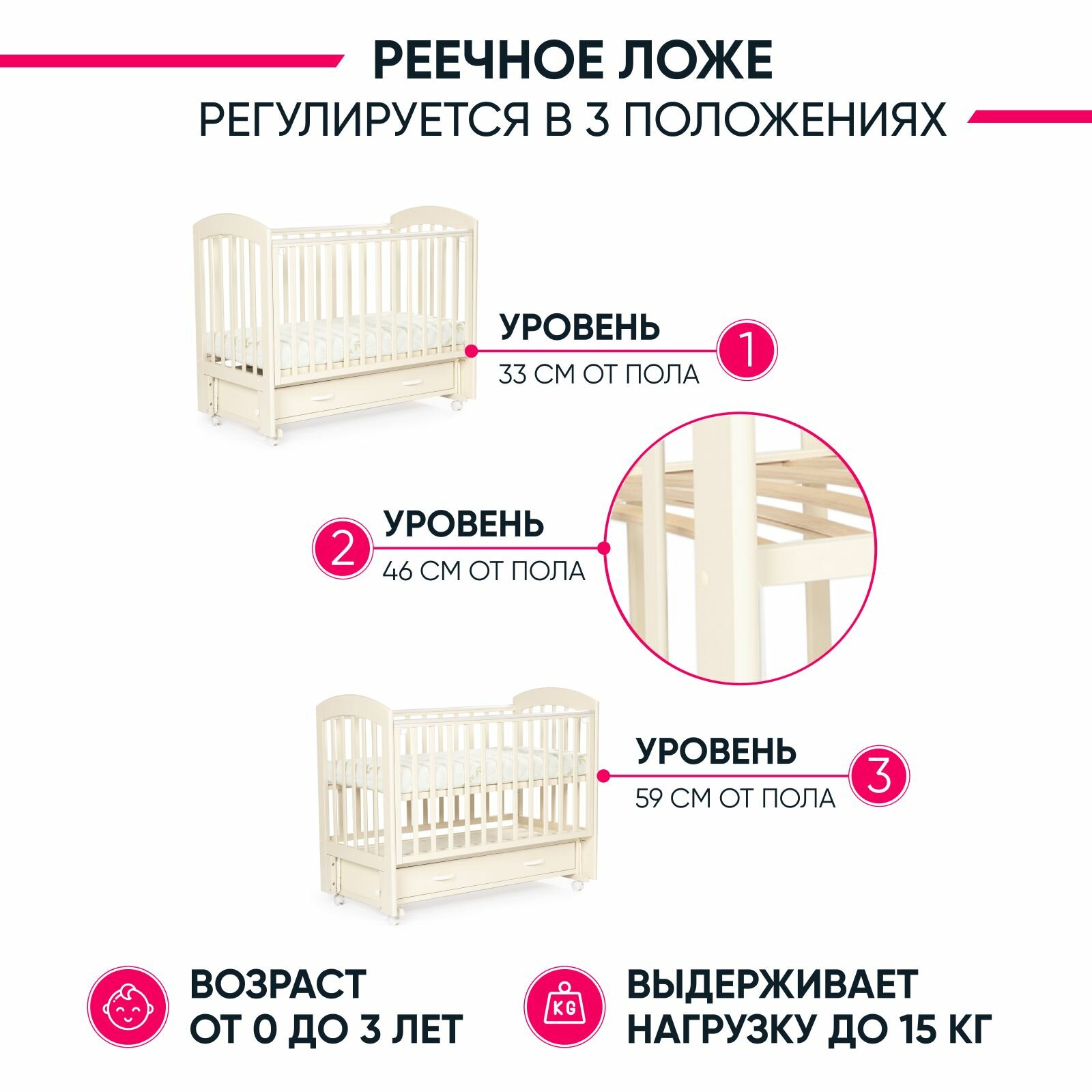 | Глубина кроватки | 33 - 59 см |
