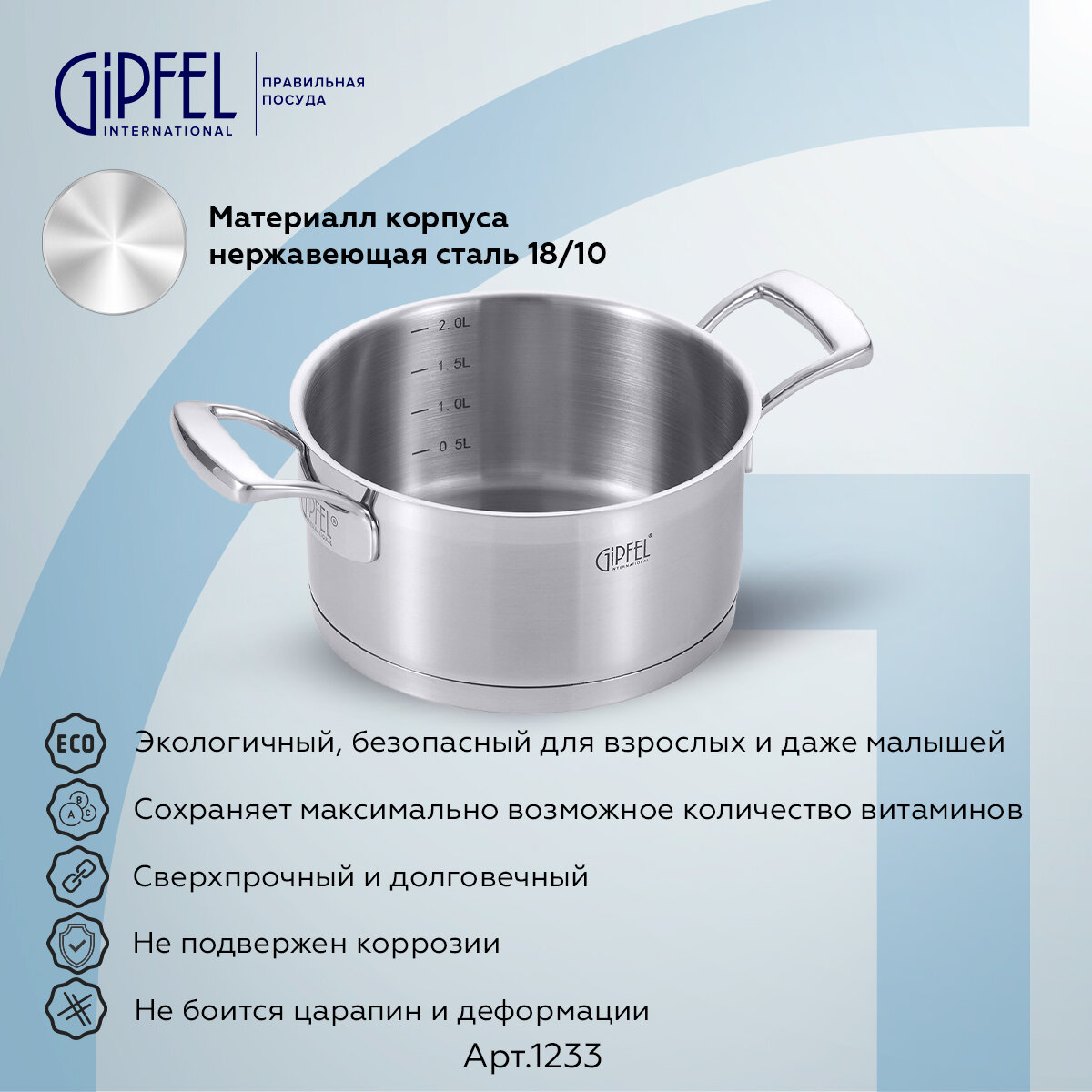 10 цен на Кастрюля из нержавеющей стали Gipfel Prestige 1233 18 см/2 л