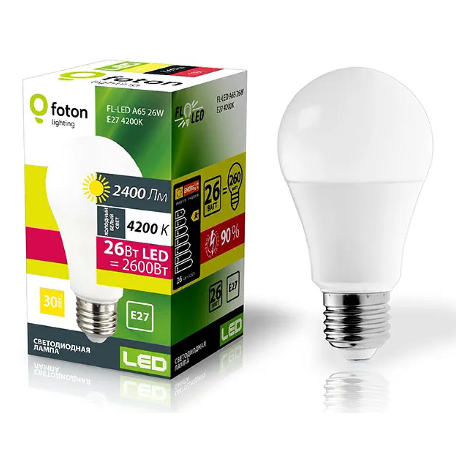 Отзывы на 10 шт/уп. Лампа LED Груша 26W 220-240V E27 2400Лм 4200К Угол 140 град. D-65mm L-133mm Свет Нейтральный белый Foton Lighting, уп. 10шт
