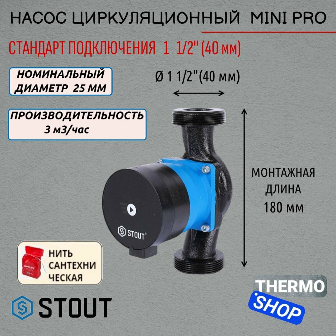 Насос циркуляционный mini pro 25/40-180, STOUT, SPC-0003-2540180 34 000 ₽