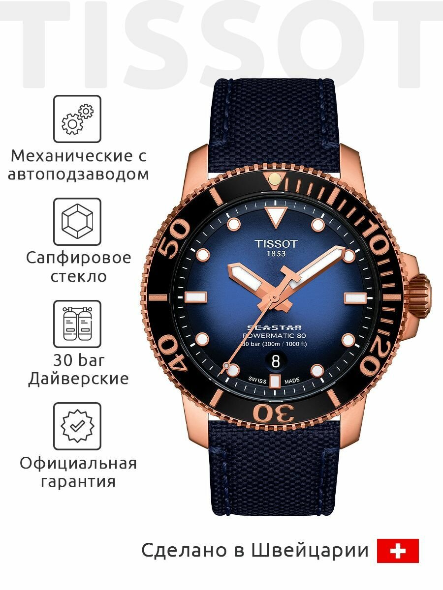 Швейцарские механические часы с автопозаводом Tissot Seastar 1000 Powermatic 80 T120.407.37.041.00 на тканевом браслете, с водозащитой 30 бар и международной гарантией от производителя