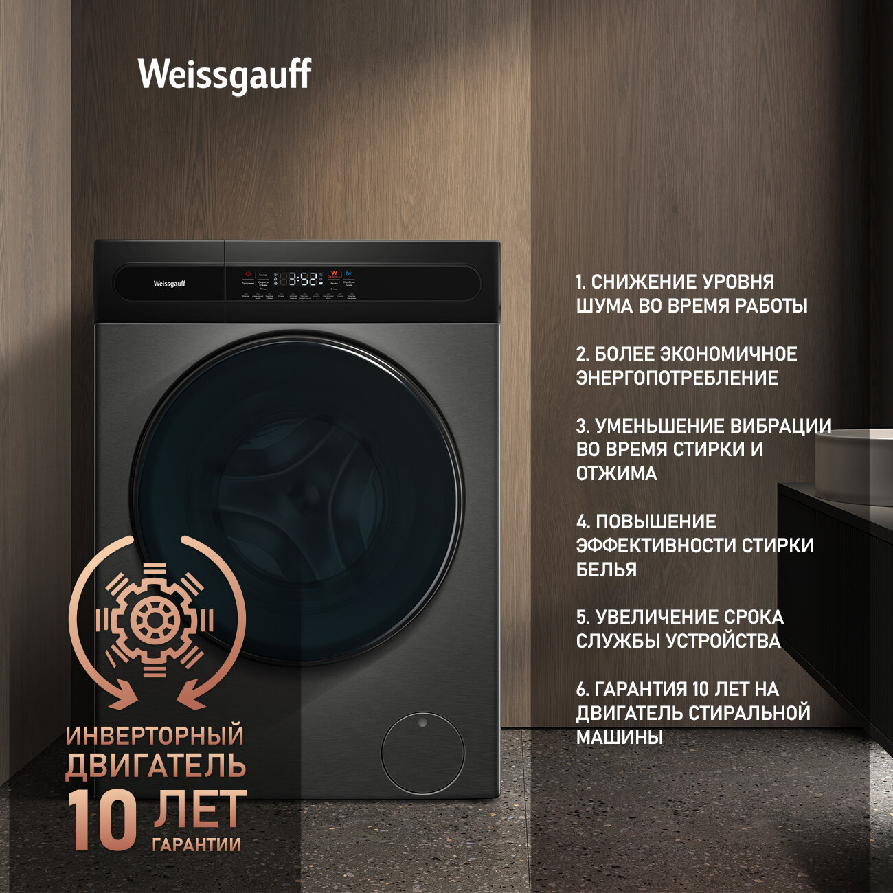 Cтиральная машина с сушкой, прямым приводом и инвертором Weissgauff WMD 61211 Direct Drive Inverter Premium