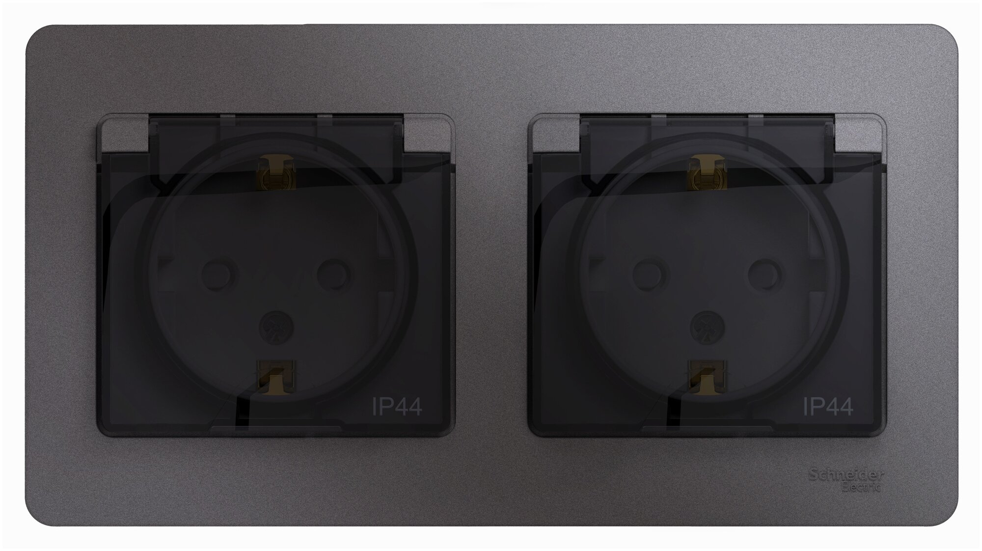Розетка SYSTEME ELECTRIC (SCHNEIDER ELECTRIC) SCHNEIDER ELECTRIC GLOSSA двойная с заземлением, со шторками, в сборе, IP44, Графит, GSL001347
