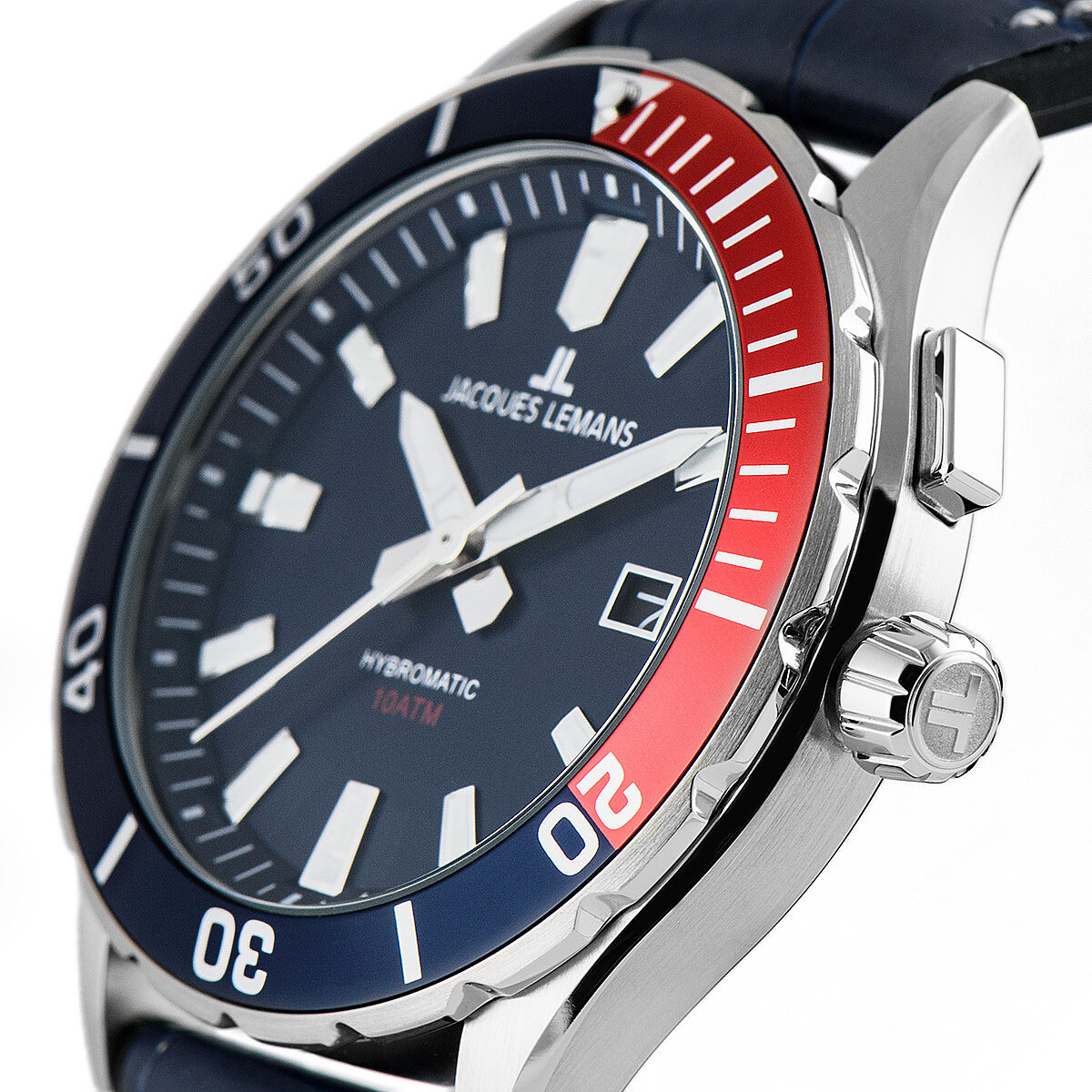 Отзывы на Наручные часы Jacques Lemans Hybromatic 1-2131B, мужские гибридные спортивные часы Жак Леман с датой на комбинированном ремне (силикон и кожа)