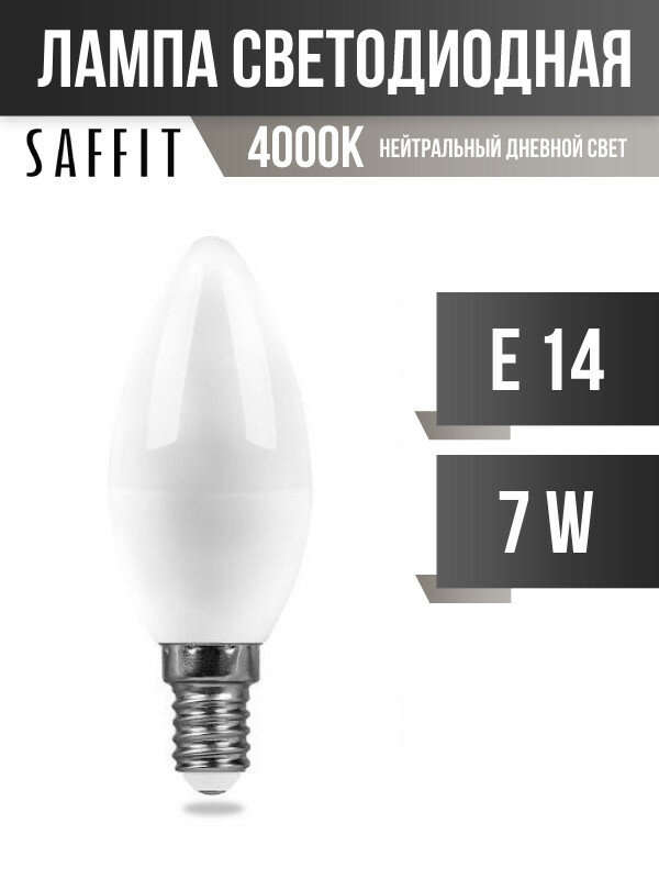 Лампочка светодиодная Saffit 7Вт 230V E14 4000K C37, SBC3707, 55031