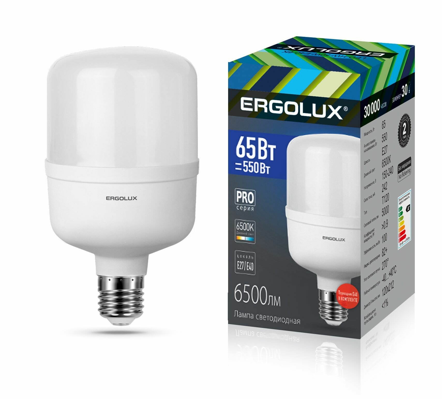 Ergolux LED-HW-40W-E27-6K серия PRO (Эл.лампа светодиодная 40Вт E27 6500К 150-260В)