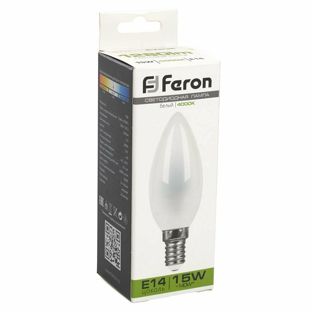 Лампа светодиодная Feron E14 15W 4000K Свеча Матовая 10 штук В комплекте информация: