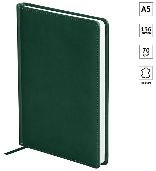 Ежедневник недатированный А5 OfficeSpace Winner (136 листов) обложка кожзам, зеленая (En5_12683)