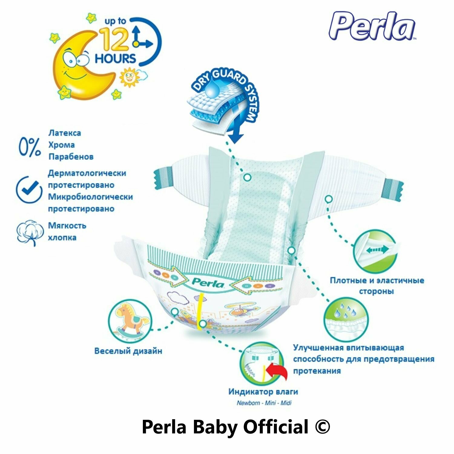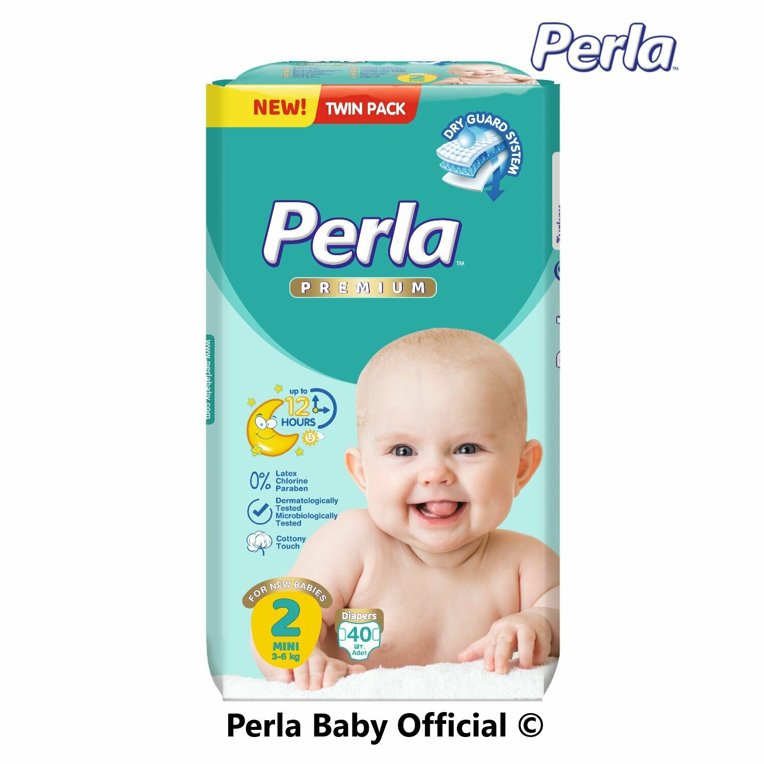 Подгузники для новорожденных ночные премиум детские 2 размер , памперсы ночные для детей, турецкие Perla Twin Mini для новорожденных от 3-6 кг, 40 шт, одноразовые информация: