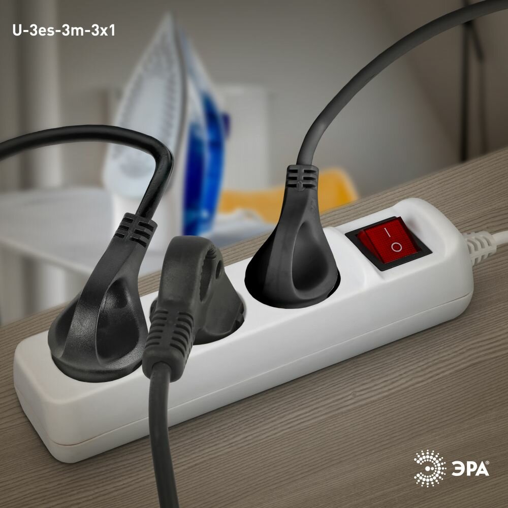 10 цен на Удлинитель электрический 3 розетки 3 метра 16А ЭРА U-3es-3m с заземлением с выключателем белый