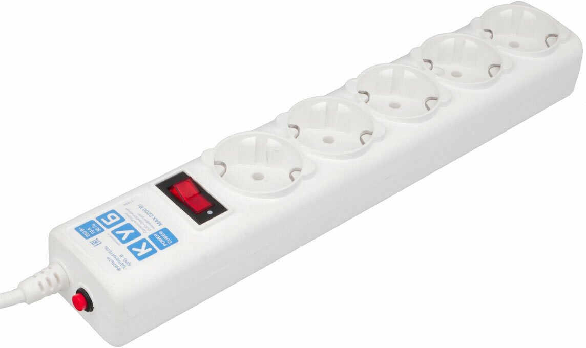 Сетевой фильтр РС 1,9 м 5 гнезд, цвет белый 10А