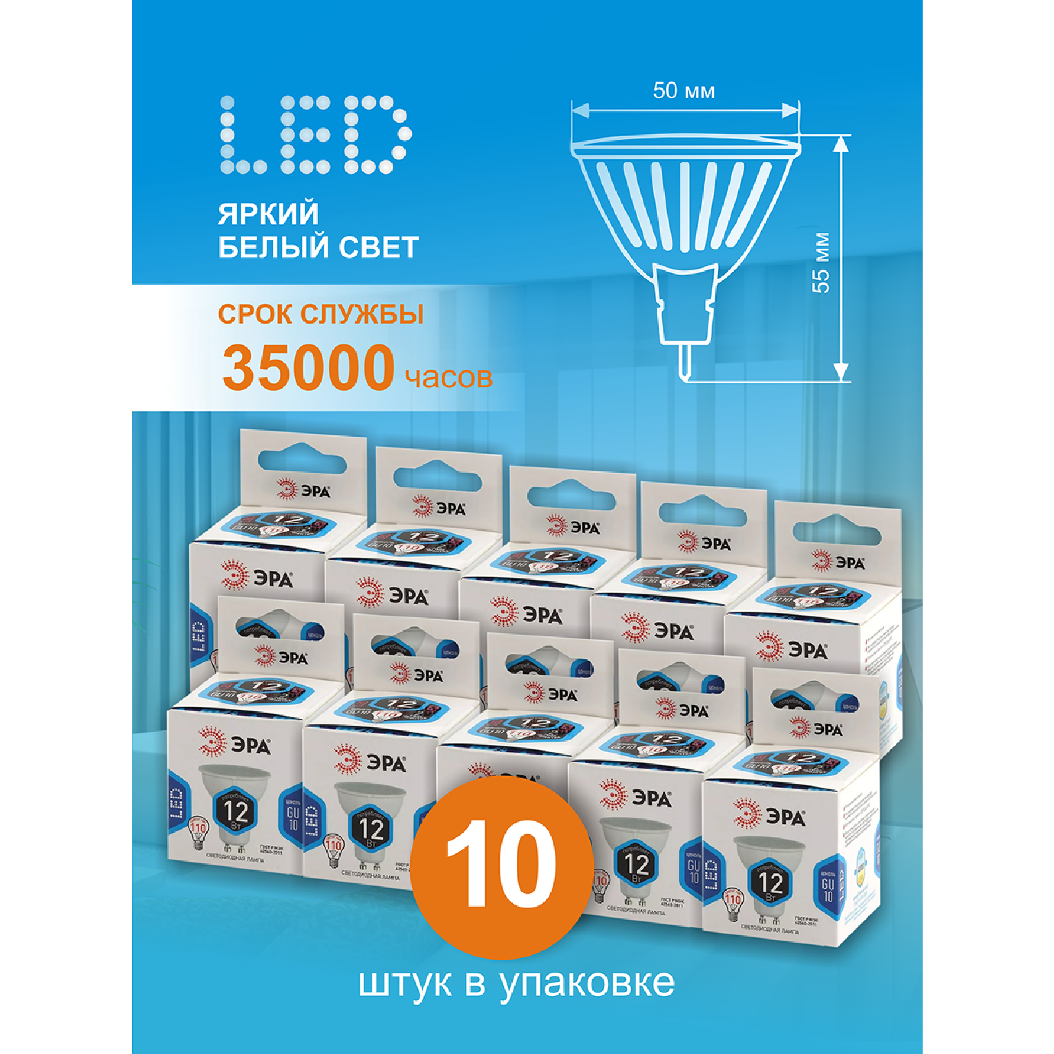 Отзывы на Лампочка светодиодная ЭРА (набор 10 штук) STD LED MR16-12W-840-GU10 GU10 12 ВТ софит нейтральный белый свет