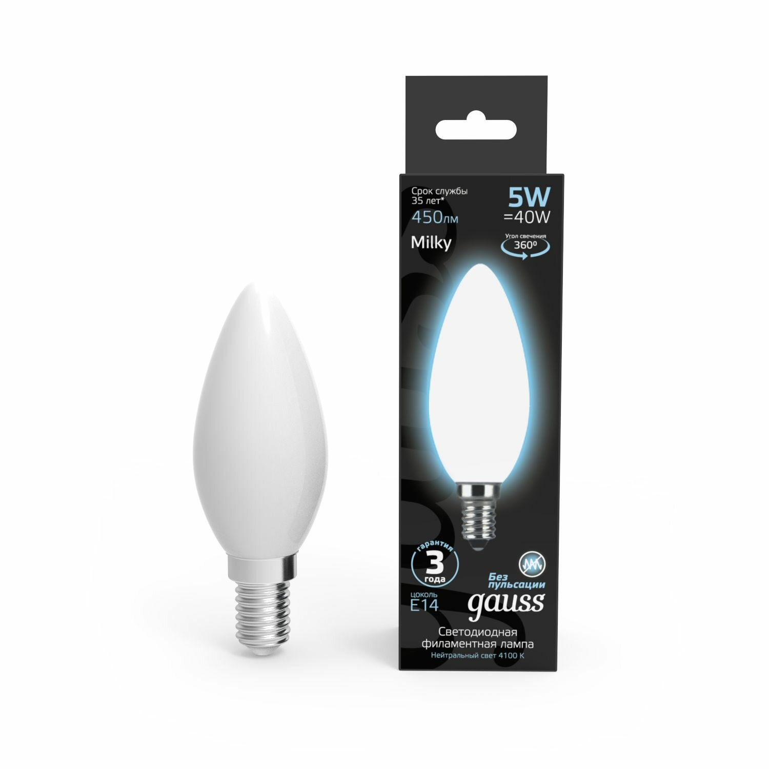 Светодиодная лампа Gauss LED Filament Candle OPAL E14 5W 4100К (упаковка 10 шт)