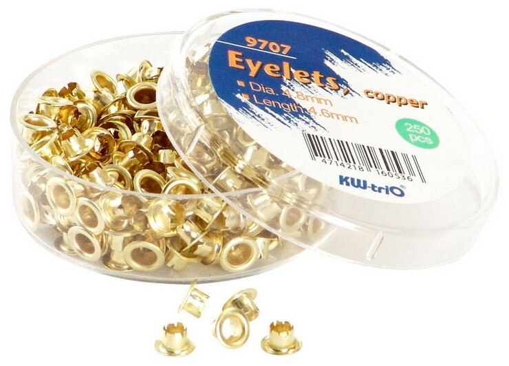 Люверсы для дырокола, 250 шт./уп Kw-Trio, диаметр= 4,8, золотистые