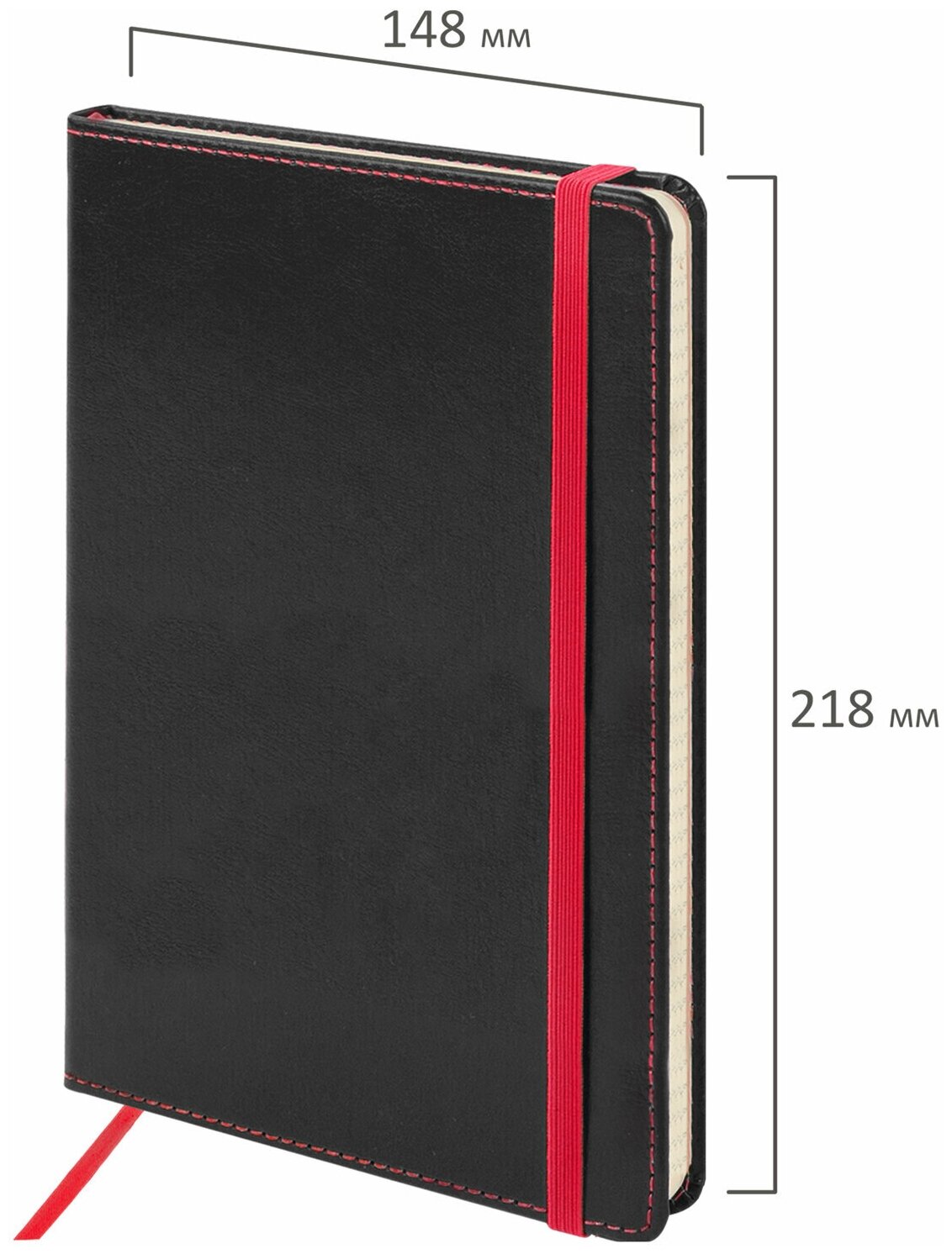 Блокнот А5 (148x218 мм), BRAUBERG "Office", под кожу, 80 л., резинка, клетка, черный, 111027