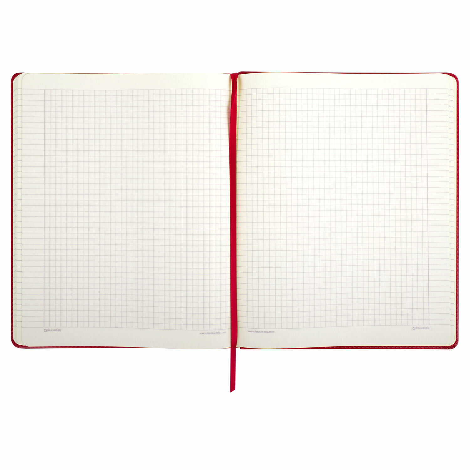 Бизнес-тетрадь BRAUBERG (брауберг) А4, 200х252 мм, "InСome", под кожу классик, клетка, 128 л., красная