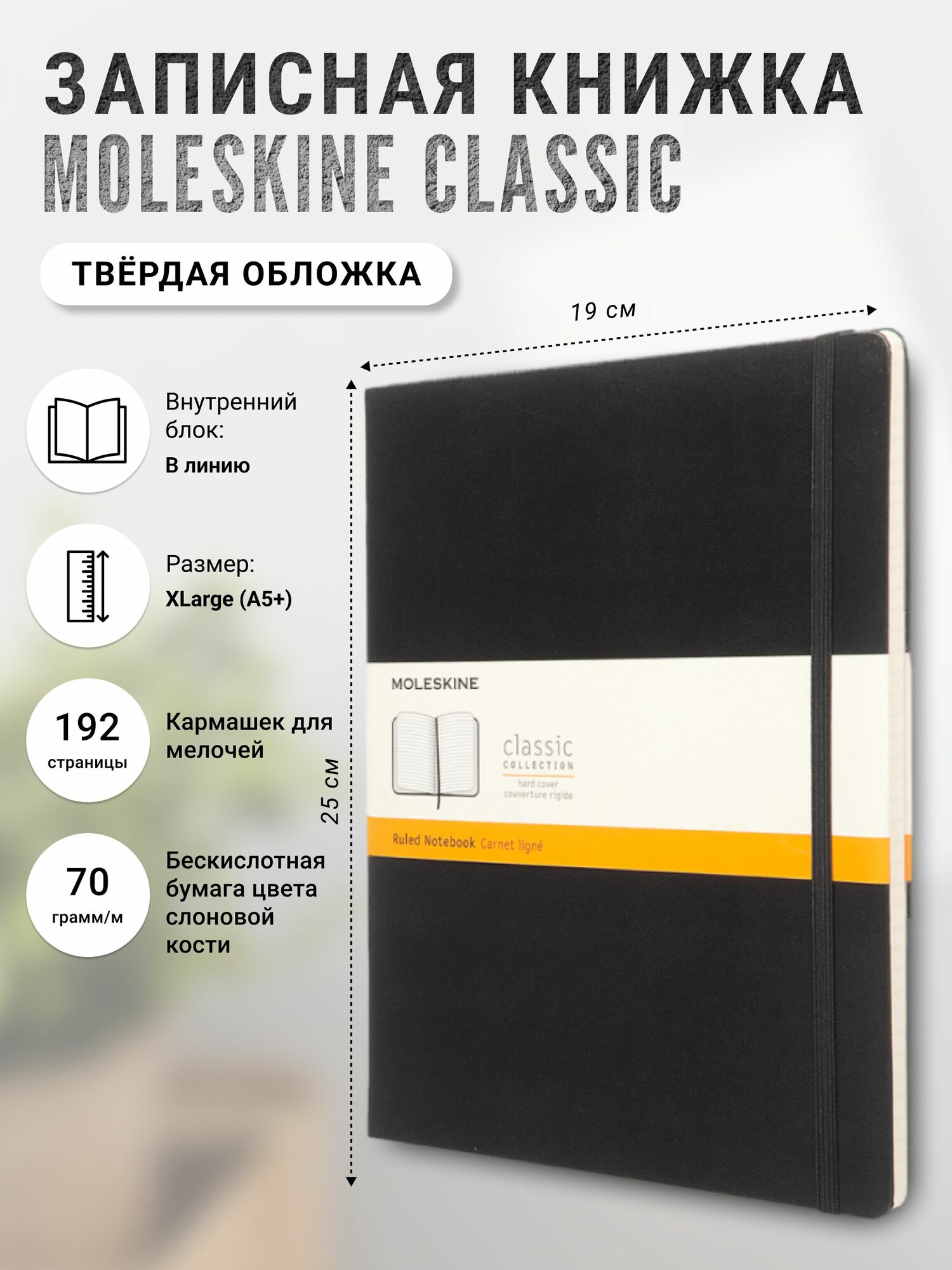 Записная книжка Moleskine Classic (в линейку), XLarge (19х25см), черная информация: