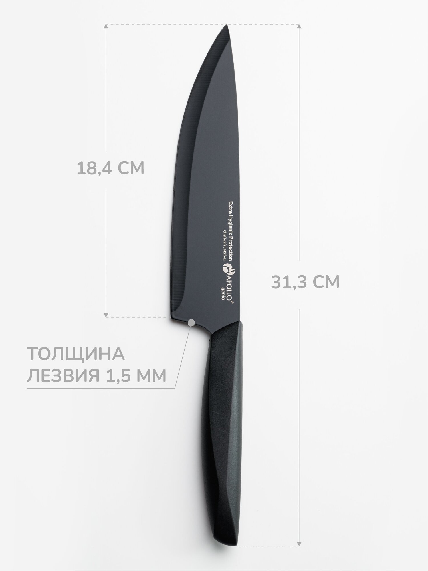 Нож apollo genio nero steel 18см поварской нерж.сталь с антибакт.покр., пластик