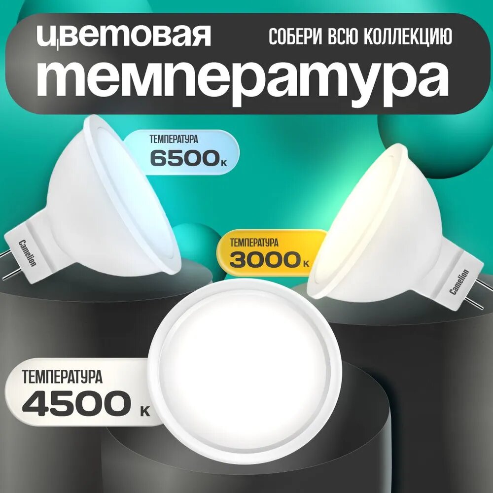 10 цен на Лампочка светодиодная Camelion LED 5W MR16 GU5.3 4500K дневной белый свет