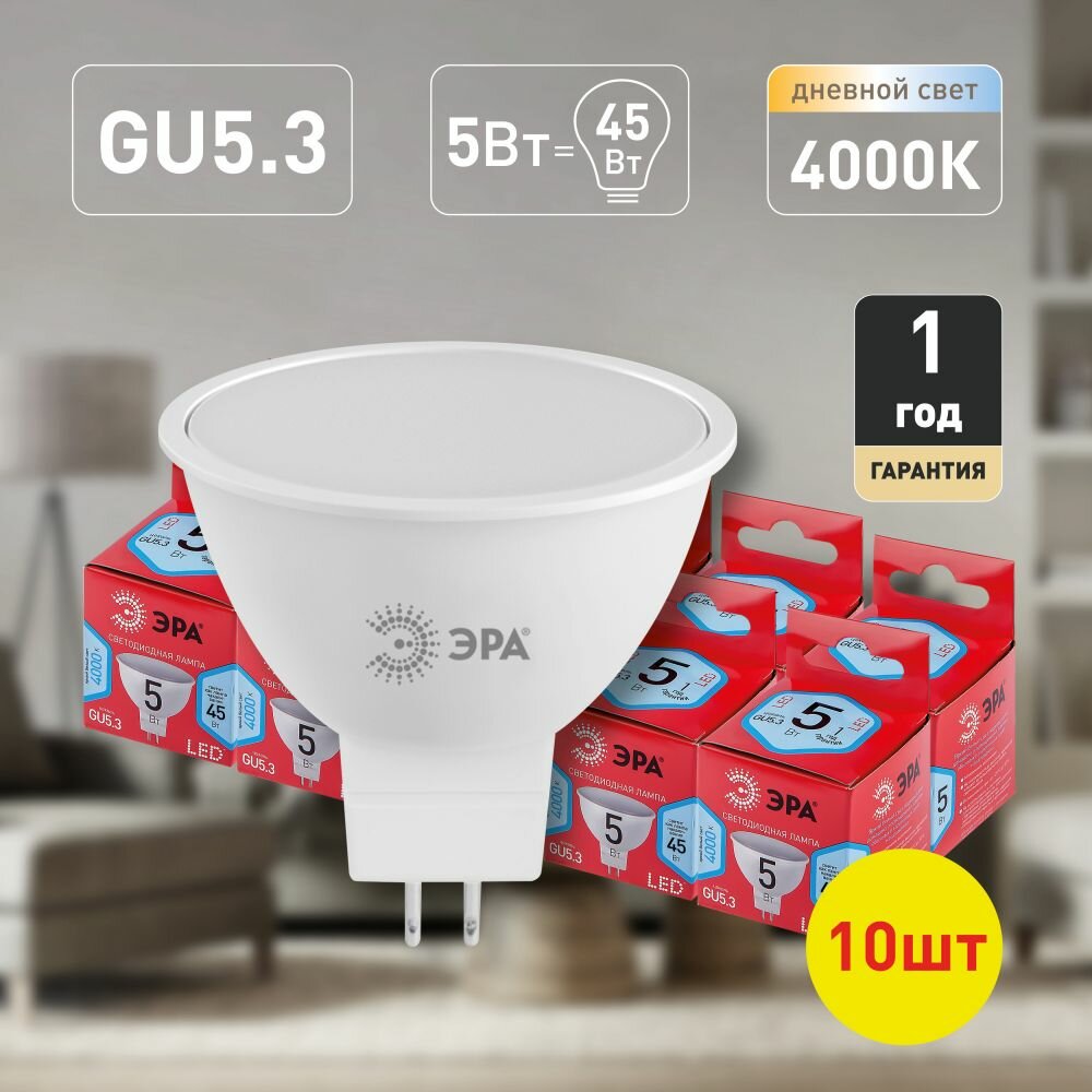 Отзывы на Набор светодиодных лампочек ЭРА LED MR16-5W-840-GU5.3 R 4000K софит 5 Вт 10 штук