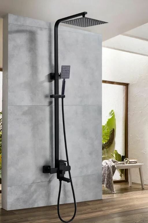 10 цен на Душевая система с тропическим душем Haiba HB23803-7, цвет-черный/матовый