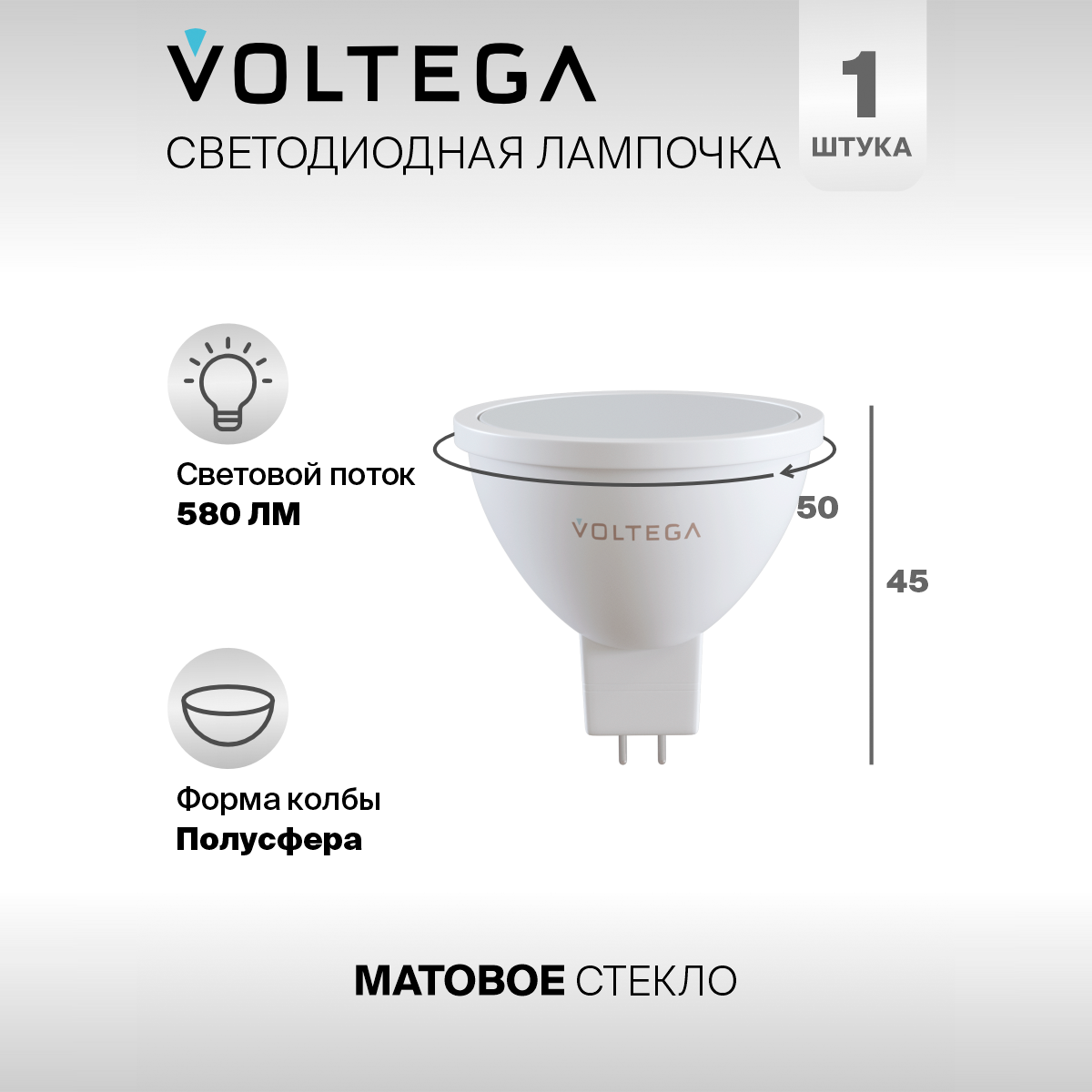 Отзывы на Лампочка светодиодная GU5.3 форма софит 7W нейтральный белый Voltega Simple MR16 4000K 1 штука