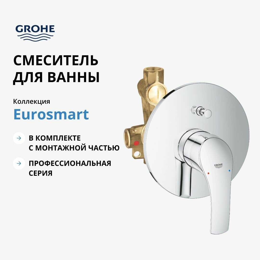 Смеситель для ванны GROHE Eurosmart скрытого монтажа, в комплекте с монтажной частью, хром (33305002)