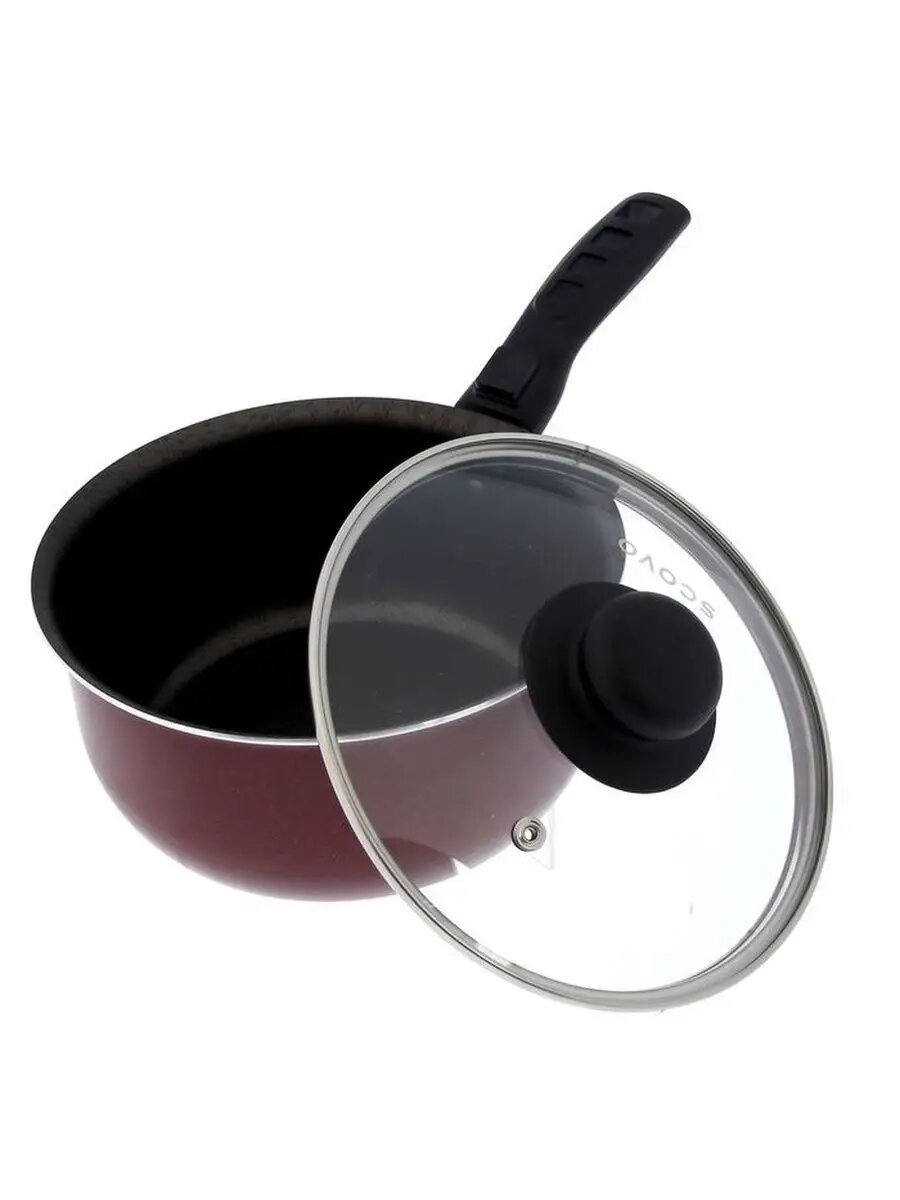 SCOVO Ковш "альфа" 1,5 л, стеклянная крышка, антипригарное покрытие, цвет красный