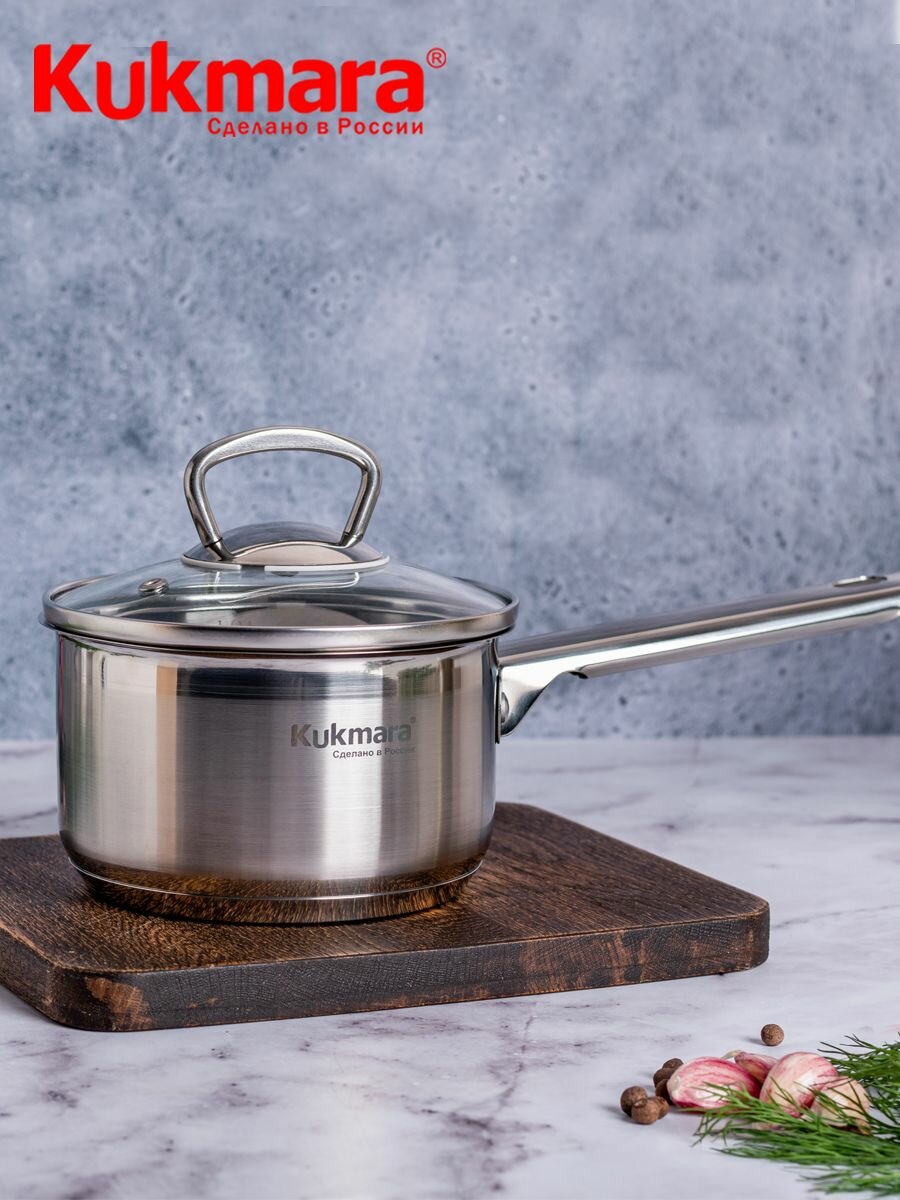 Кастрюля из нержавеющей стали KUKMARA Safia 1,2 л со стеклянной крышкой