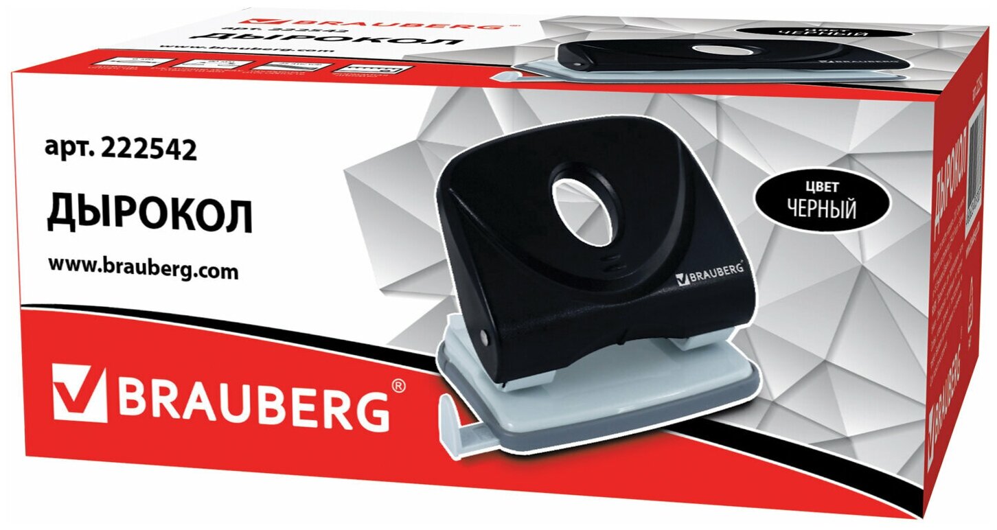 Дырокол BRAUBERG "Original", до 25 листов, черный, 222542 информация: