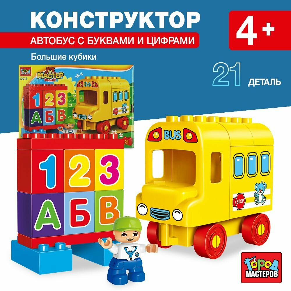 Конструктор большие кубики: Автобус с буквами и цифрами, 21 дет. Город Мастеров 10014-GK