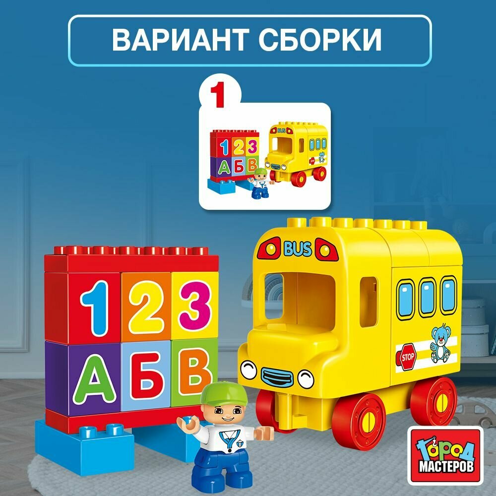 Конструктор для малышей автобус с буквами и цифрами из серии Мастер малыш 21 деталь Город Мастеров информация: