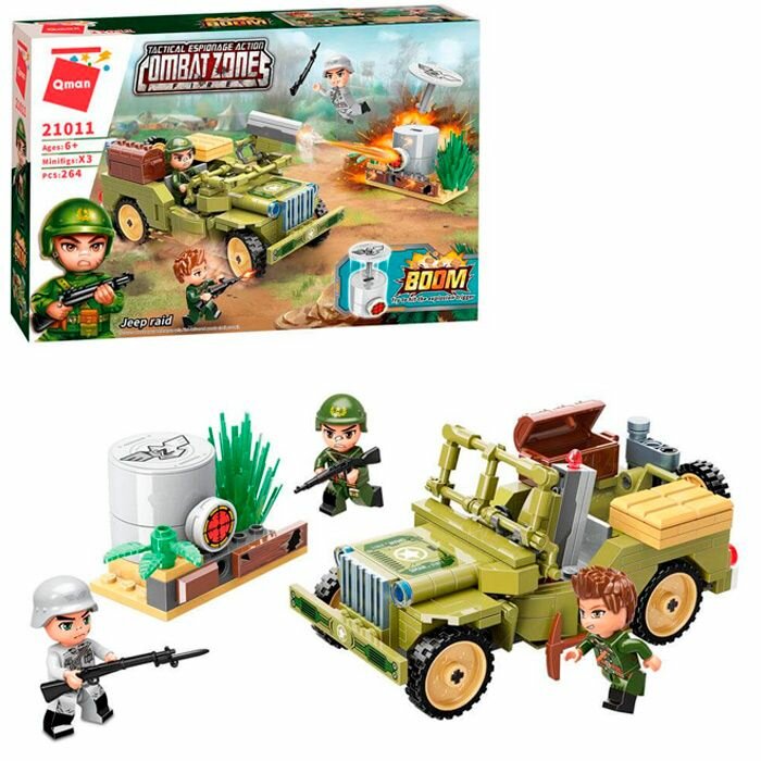 Конструктор Qman 264 дет. Джип-рейд (+фигурки, пластик, в коробке, от 6 лет) 2031741/21011, (Huada T