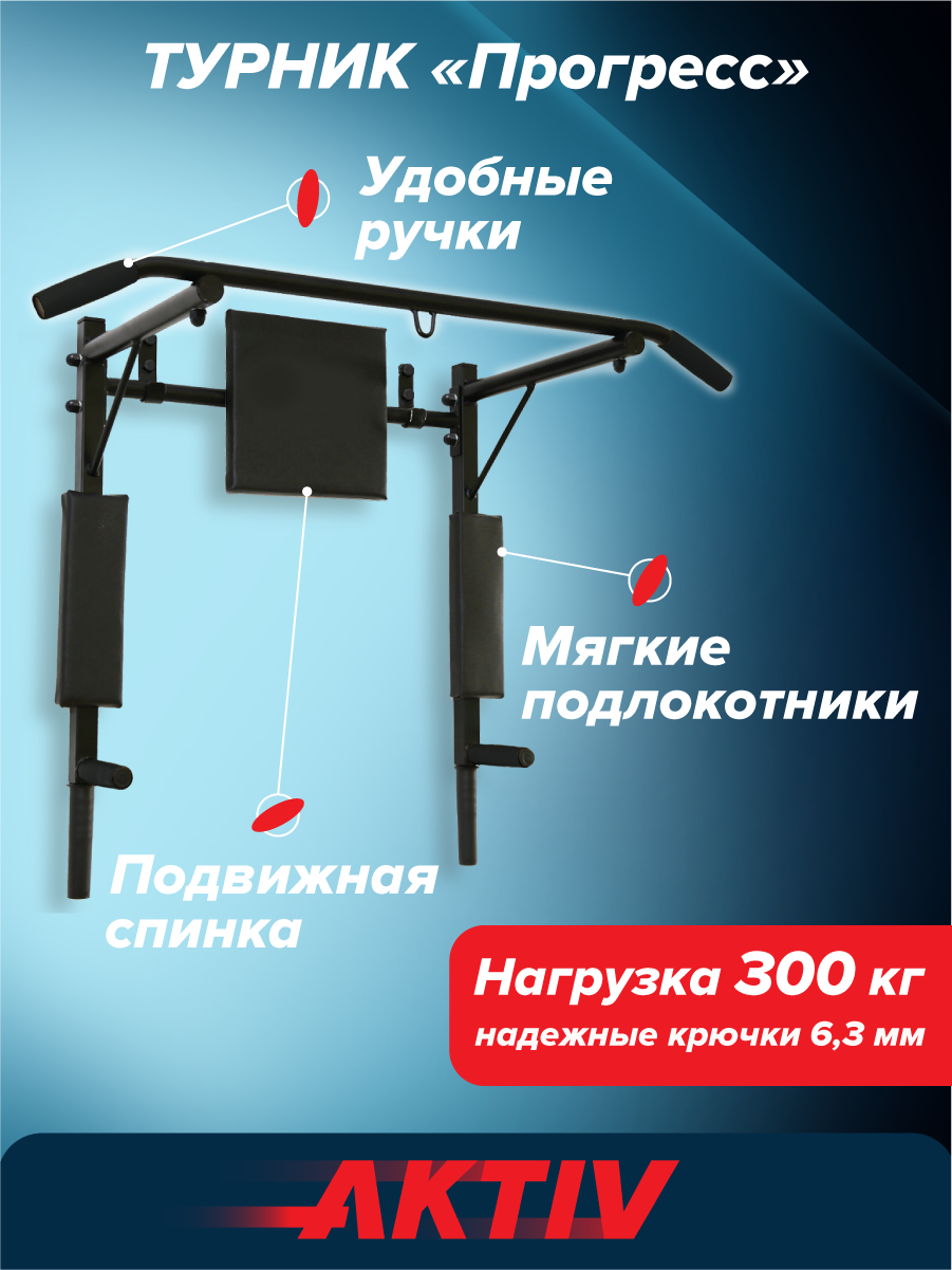 Отзывы на Турник настенный 3 в 1 брусья пресс тренажер для спорта дома, усиленный, нагрузка 300кг "Прогресс" черный с черными ручками разборный Aktiv
