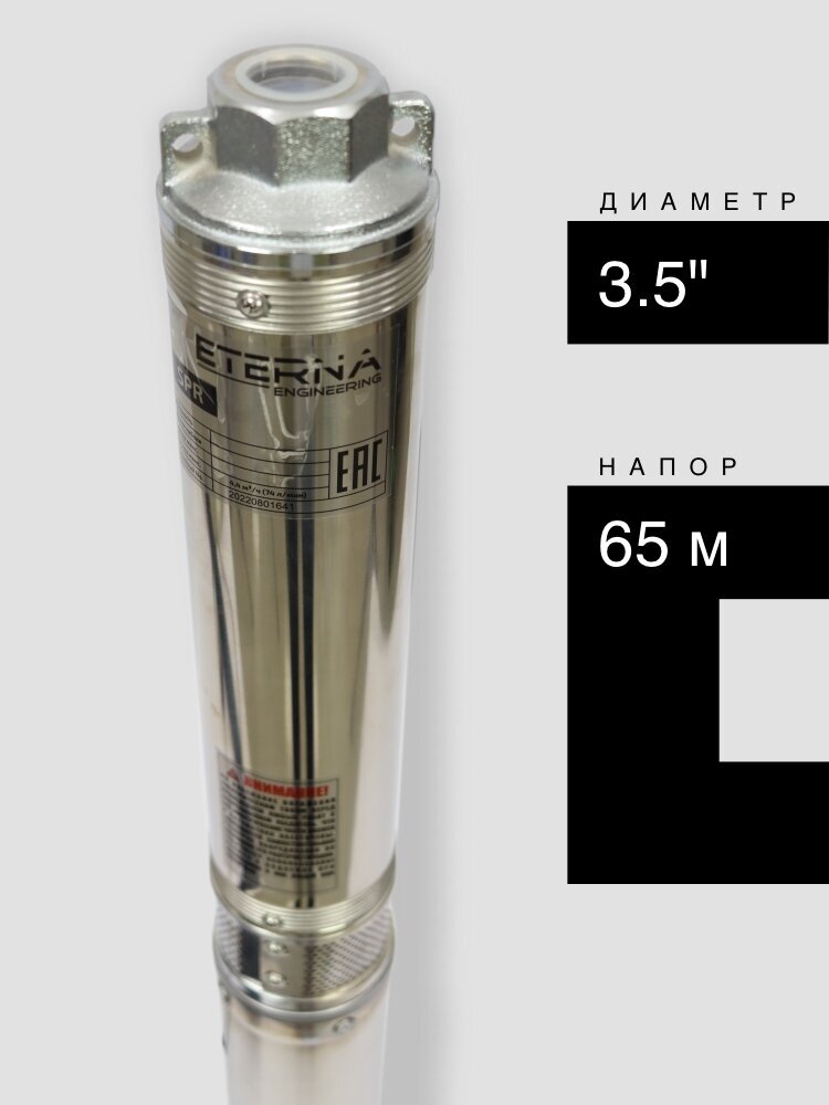 Насос скважинный ETERNA SPR-65 погружной центробежный для подачи воды из скважины, 4400 л/ч, напор 65 м, 750 Вт 15 113 ₽
