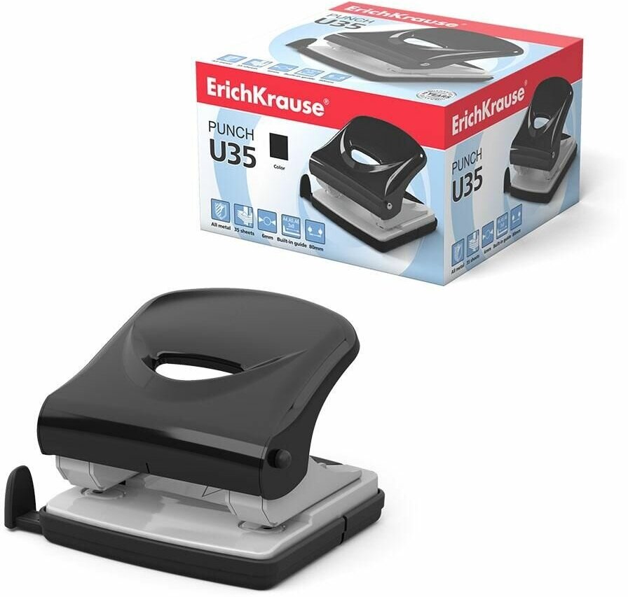 ErichKrause Дырокол ErichKrause U35, до 35 листов, диаметр прокола 6 мм, расстояние между проколами 80 мм, чёрный информация: