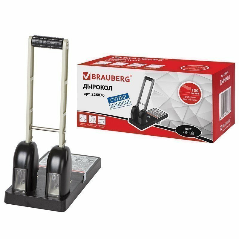 Дырокол металлический мощный BRAUBERG "Heavy duty", до 150 л., черный, 226870