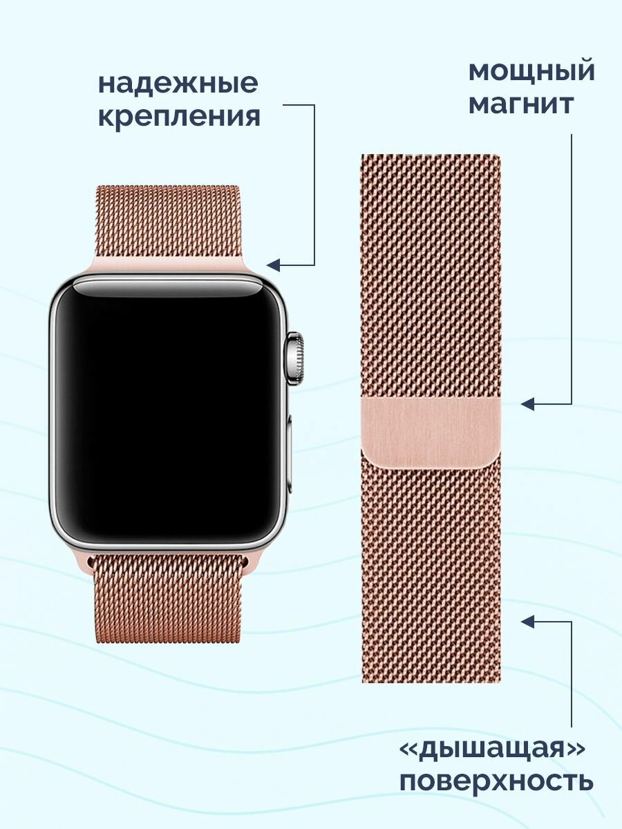 Ремешок для Apple Watch 42/44/45/49 mm Milanese Band,розовое золото