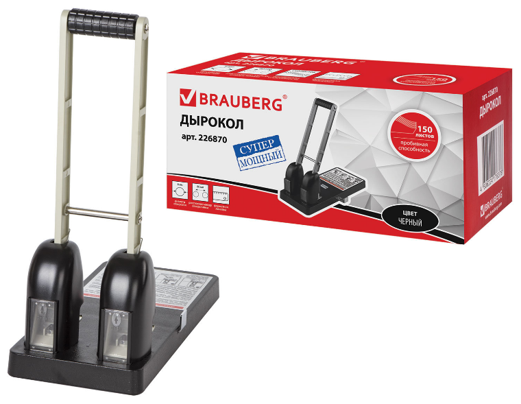 Brauberg Дырокол металлический Мощный ""Heavy duty"", до 150 листов, черный, 226870 . информация:
