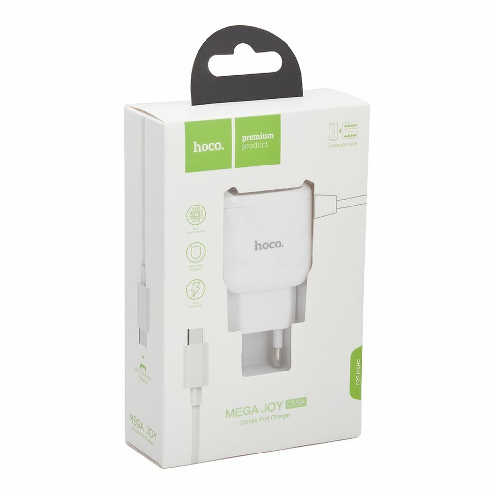 Сетевое зарядное устройство (СЗУ) Hoco C59A Mega joy (2 USB) + кабель MicroUSB, 2.1 А, белый