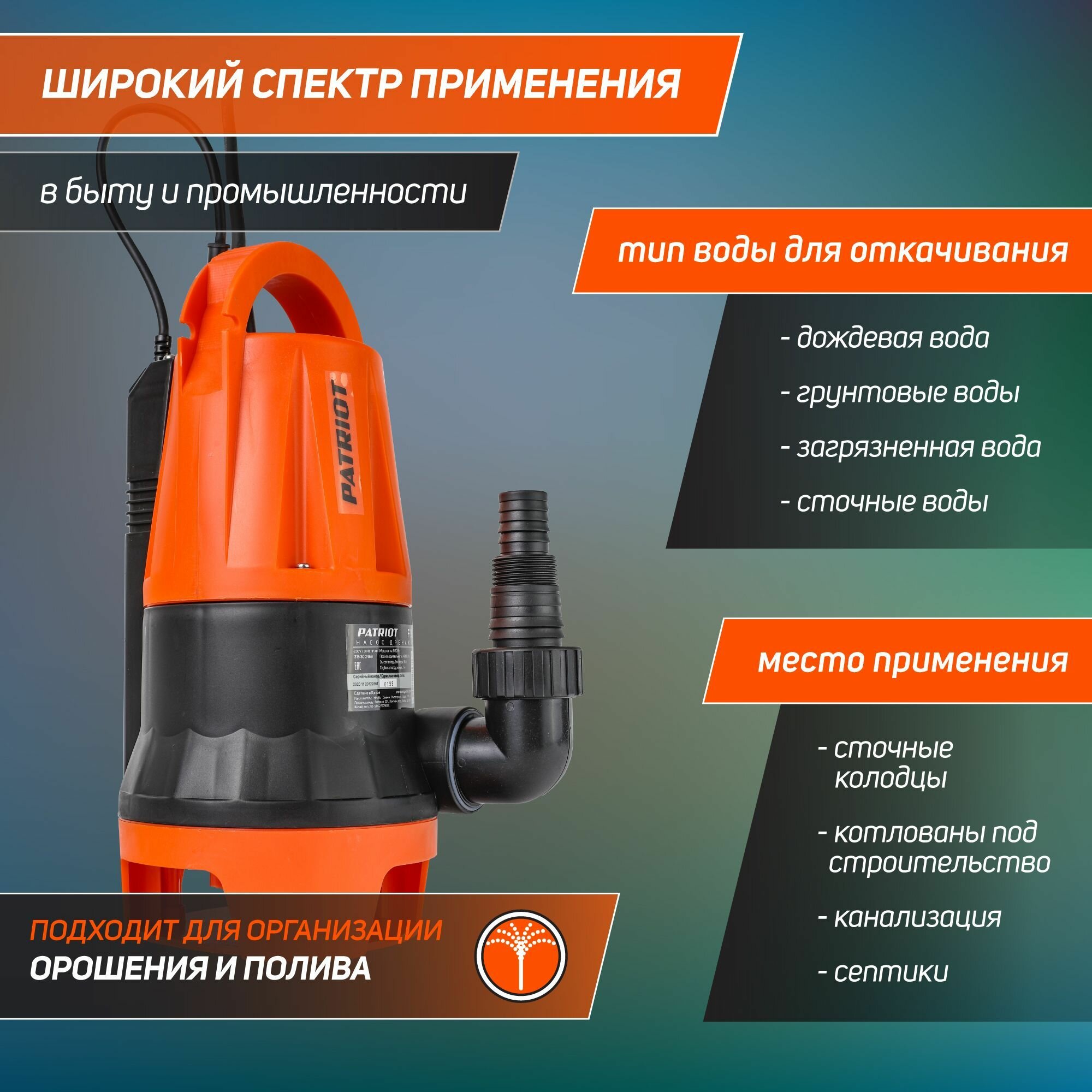 Насос дренажный PATRIOT F 900i / для грязной воды / встроенный поплавок / 920 вт / 14000 л/ч
