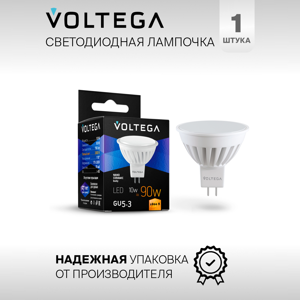 Отзывы на Светодиодная лампа GU5.3 10W 2800К (теплый) Ceramics Voltega 7074