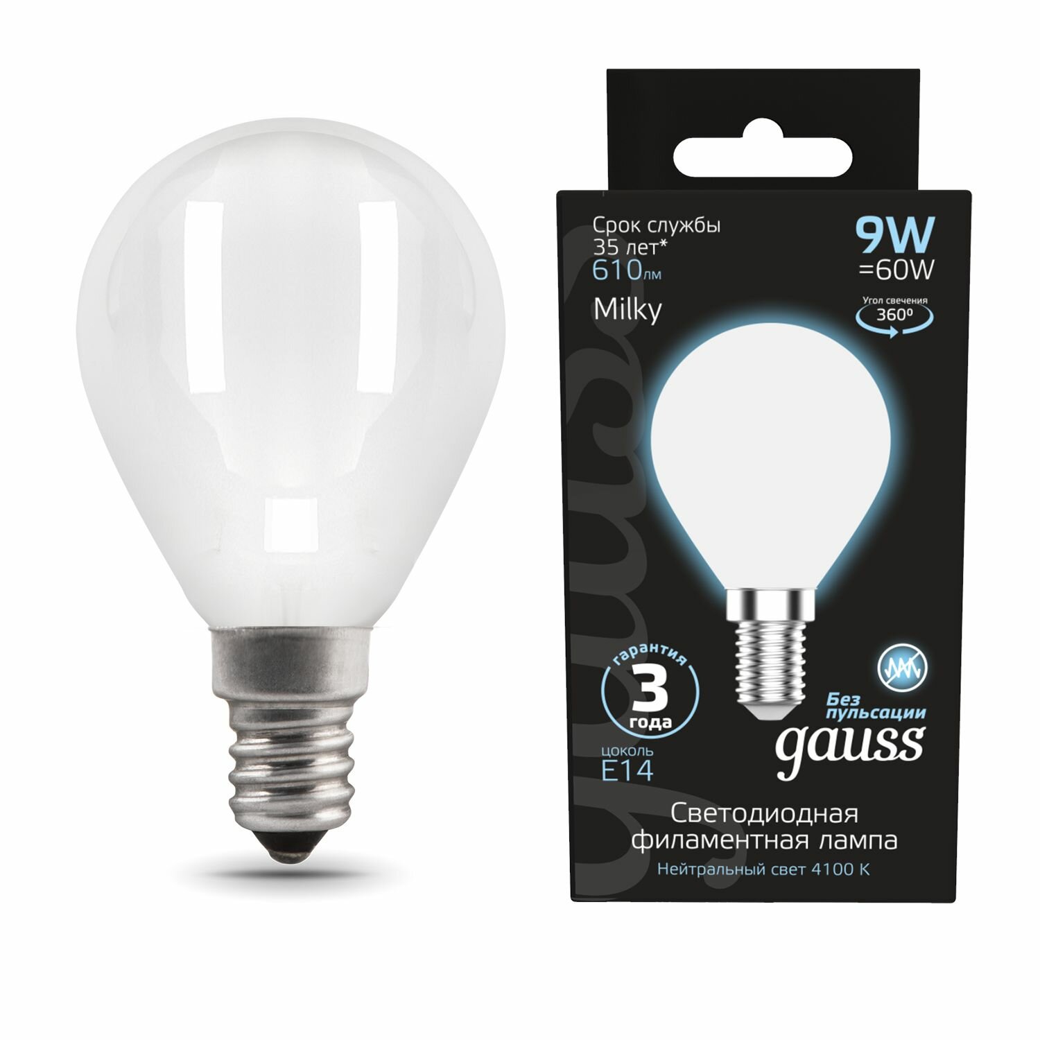 Отзывы на Набор из 10 штук Лампа Gauss Filament Шар 9W 610lm 4100К Е14 milky LED 1/10/50