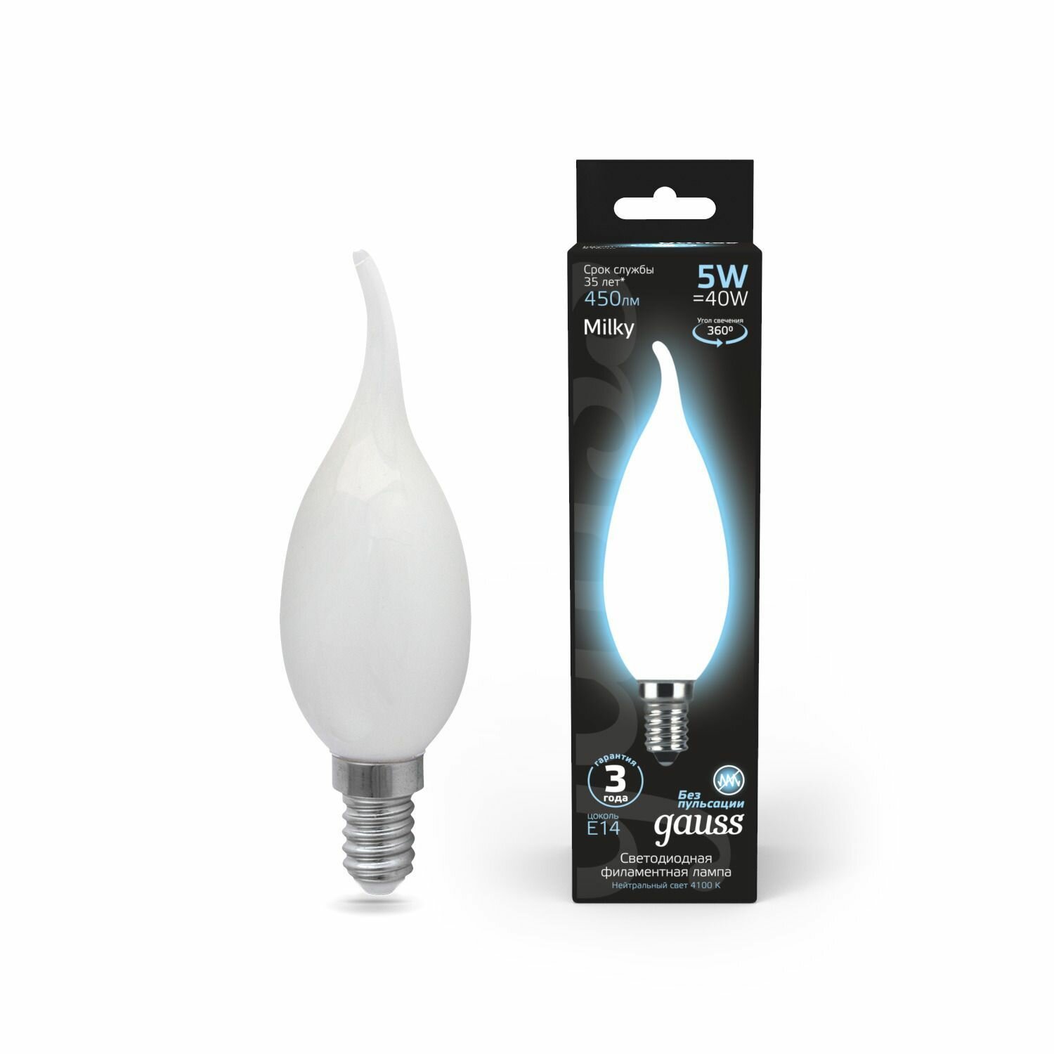 Отзывы на Лампочка светодиодная Е14 Свеча на ветру 5W нейтр белый свет 4100К упаковка 10 шт. Gauss Black Filament
