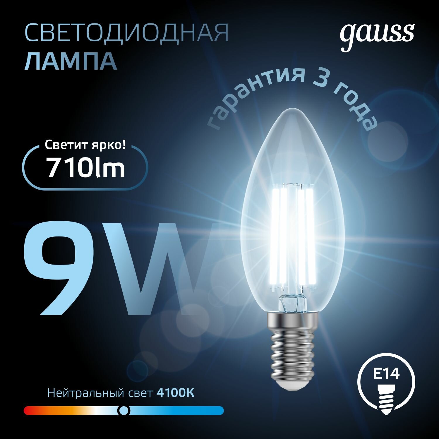 Отзывы на Лампочка светодиодная E14 Свеча 9W 4100К нейтр белый свет 4100К упаковка 10 шт. Gauss Black Filament