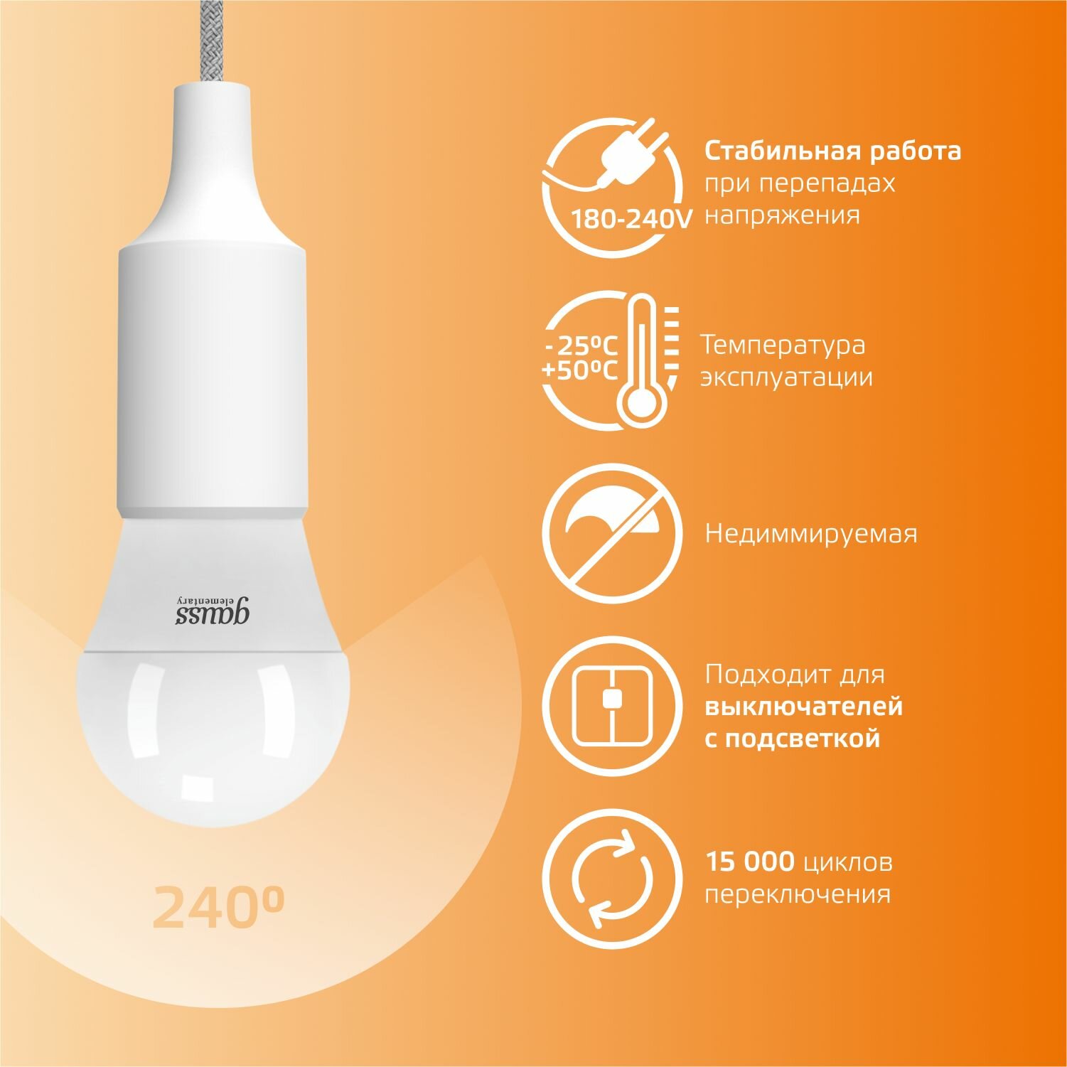 Отзывы на Набор из 10 штук Лампа Gauss Elementary Шар 10W 710lm 3000K Е27 LED 1/10/100